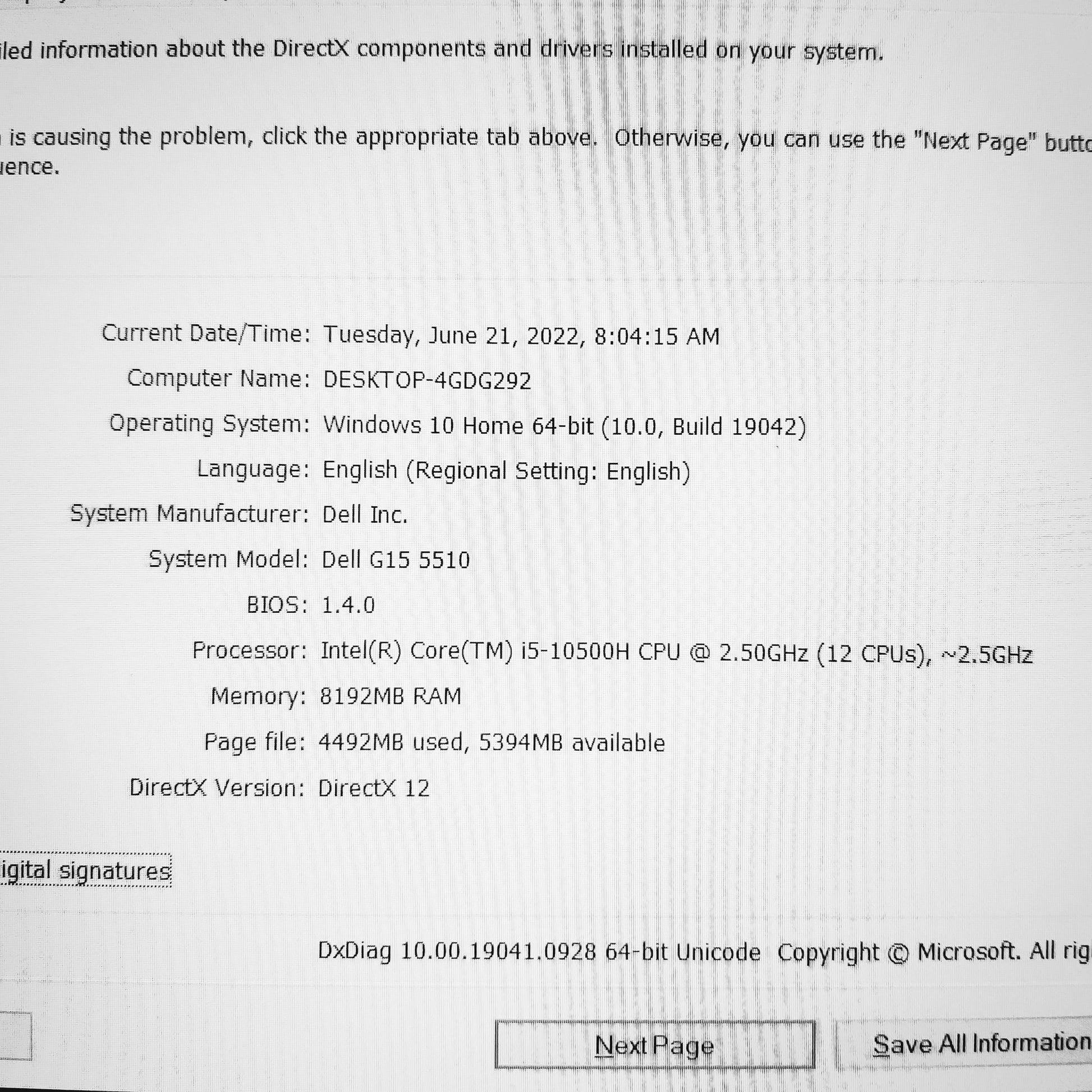 - Core i5-10500h